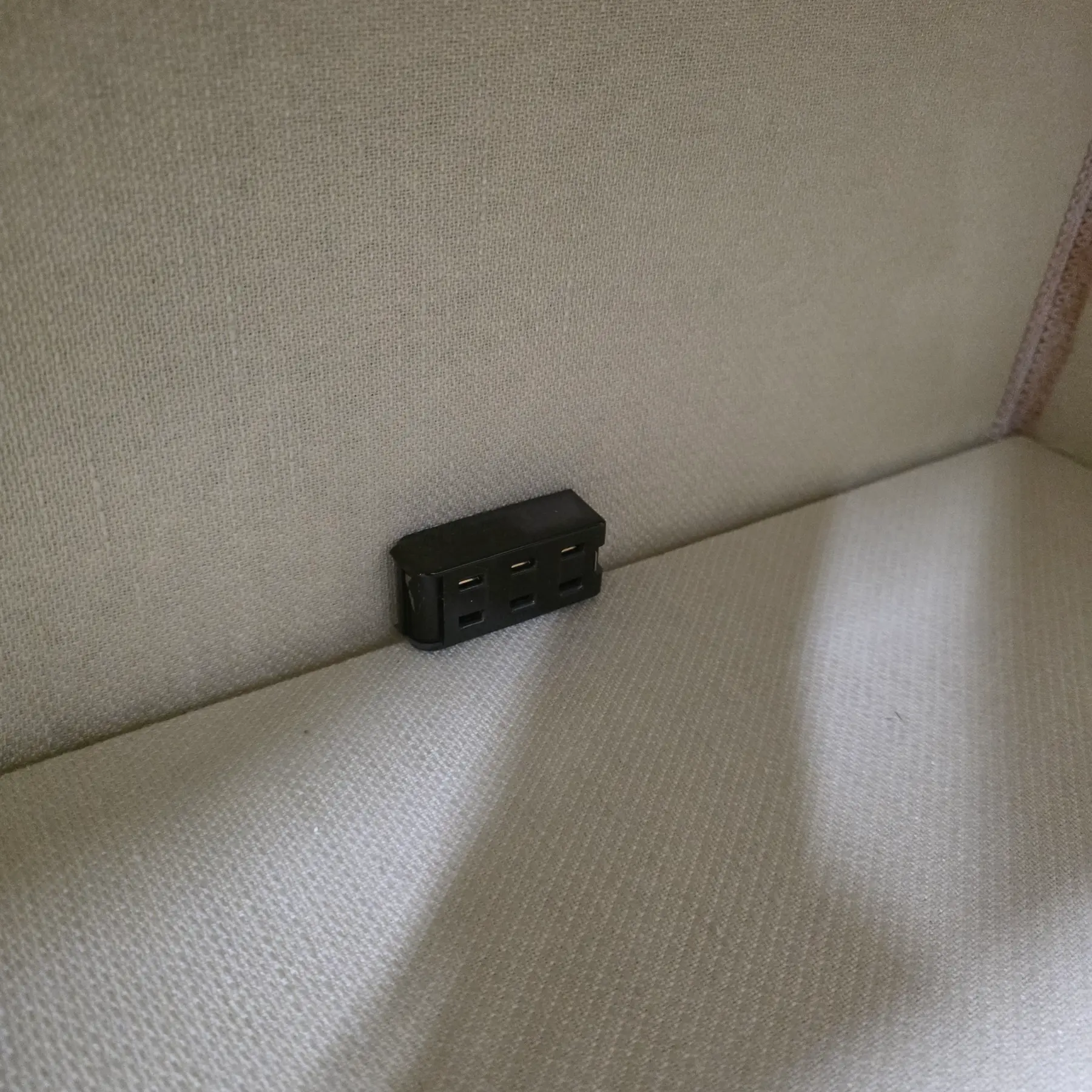 * Black multi-outlet power strip mounted along interior back panel for concealed electrical access