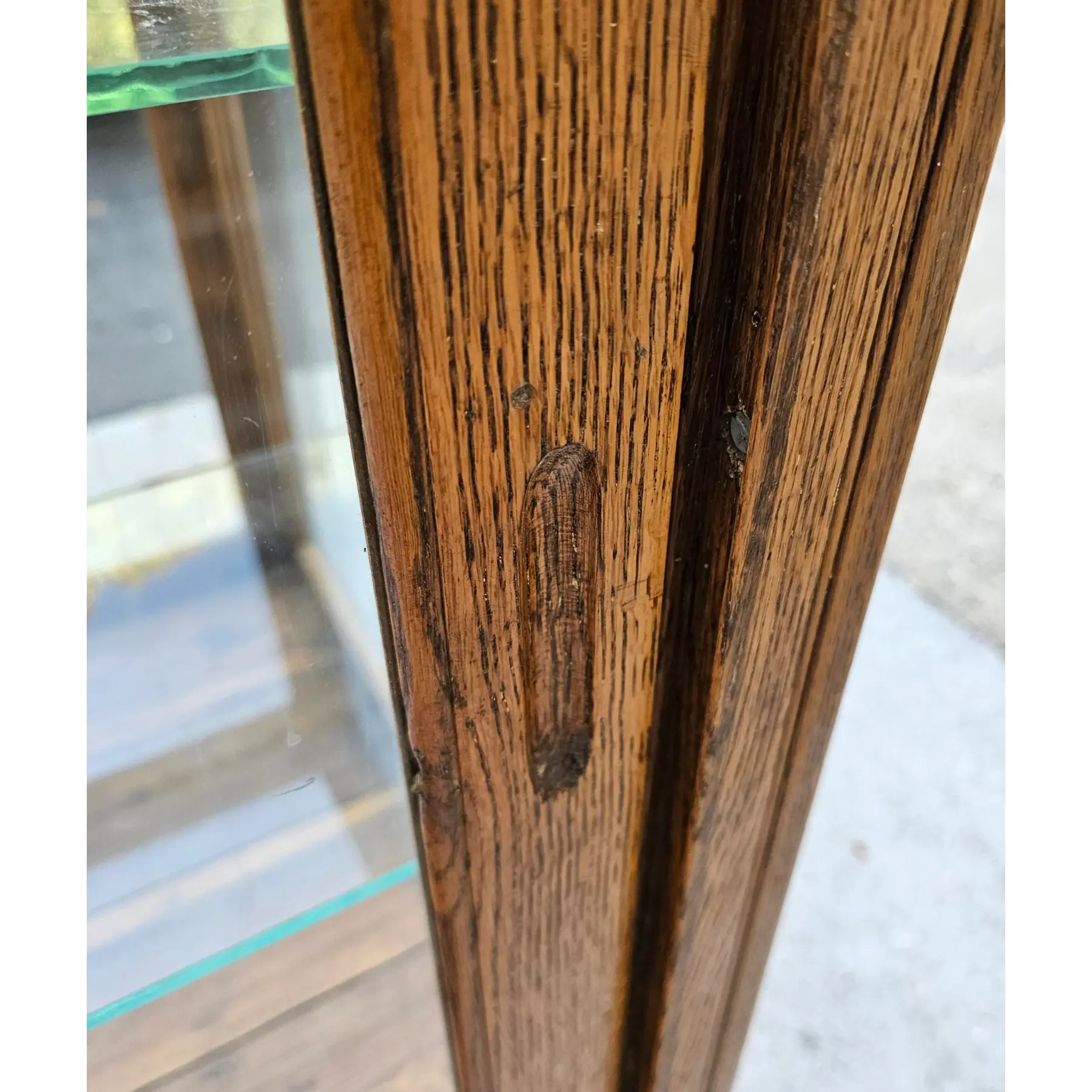 Clear, original glass panels on all four sides, including a pristine glass top