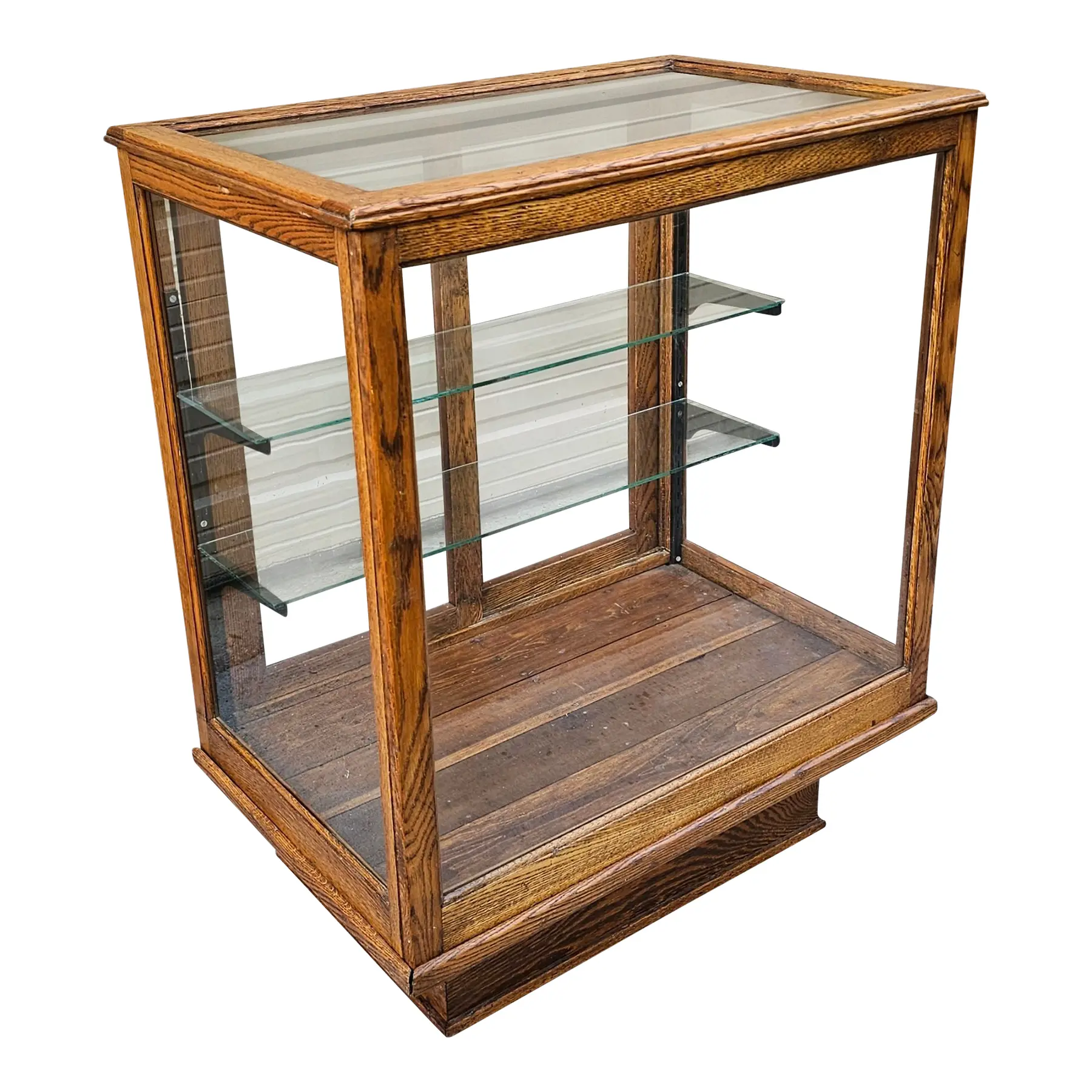 This Antique Oak Store Display Case with Glass Paneling and Adjustable Shelving with its understated elegance makes a great addition to a unique and eclectic living space or an upscale retail environment.