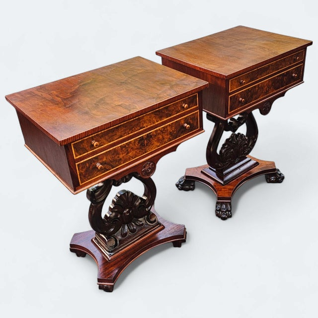 Tiered bases terminating in sculpted Regency-style paw feet