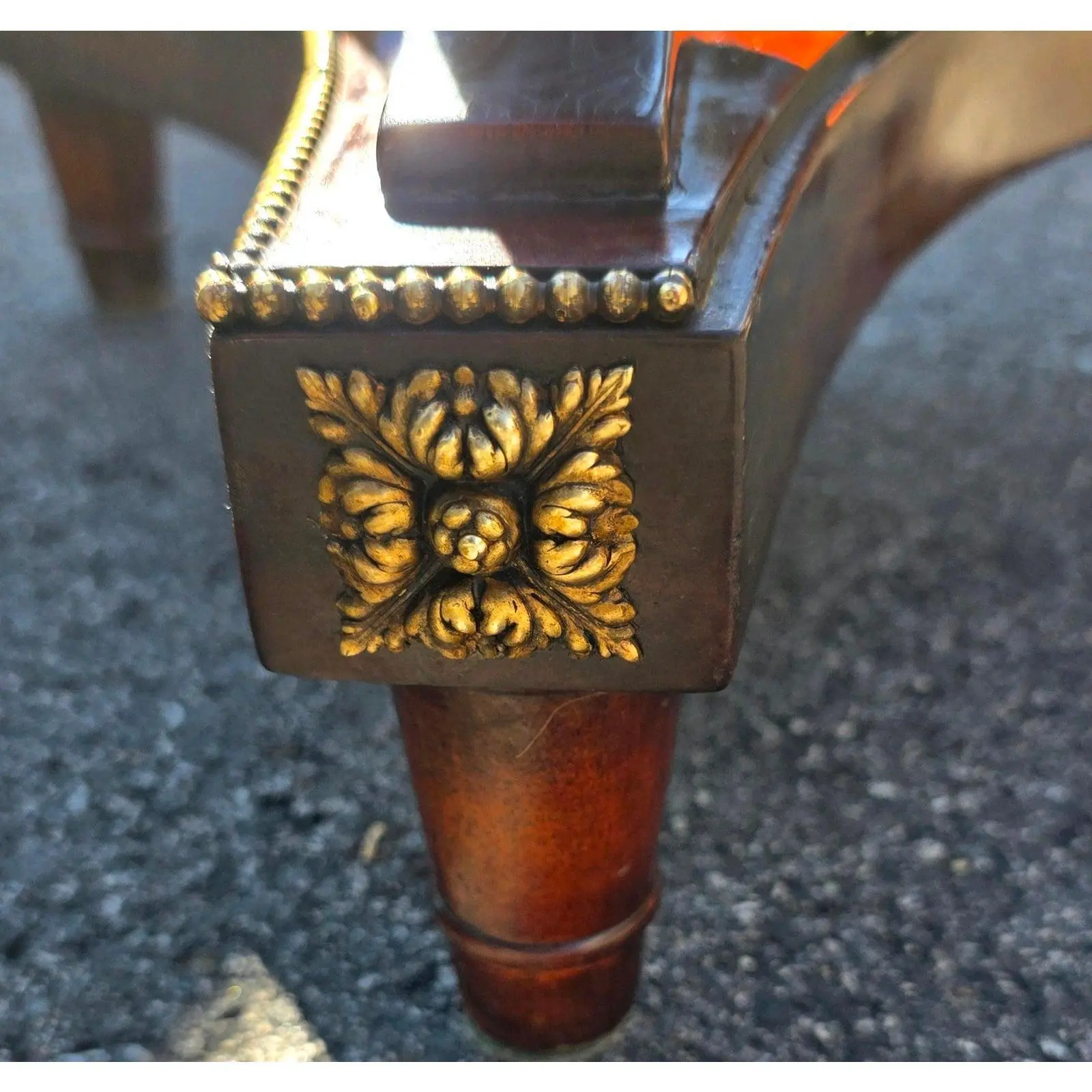Applied brass mounts in foliate and rosette motifs adorn legs and feet
