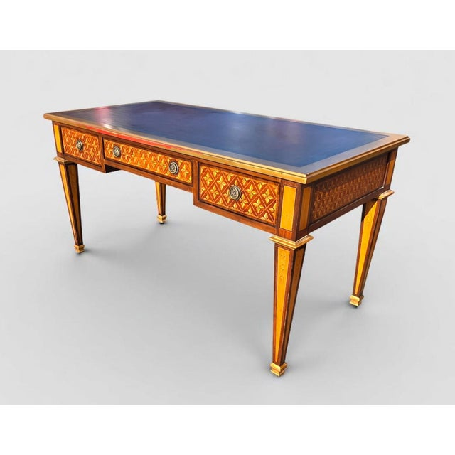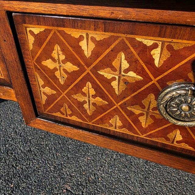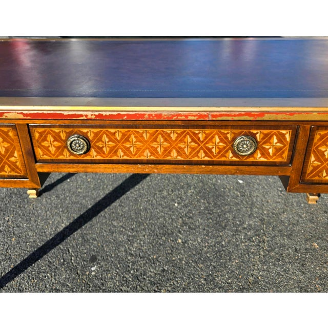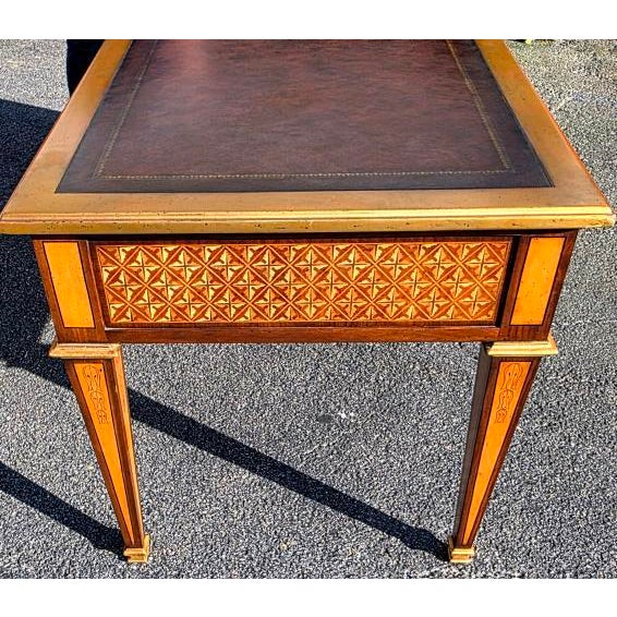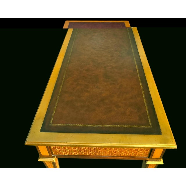 This Century Furniture Monarch Jenna Marquetry Writing Desk is a gorgeous piece that would complement an upscale library, study, or even a large and luxurious master suite.
