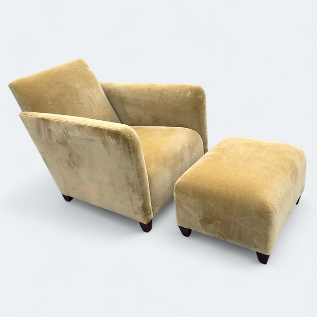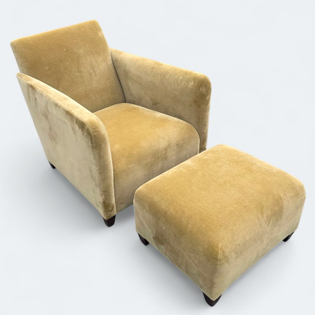This Vintage John Hutton for Donghia Lounge Chair and Ottoman is a outstanding representation of relaxed luxury in subtly tailored form – a glamorous and impressive pair.