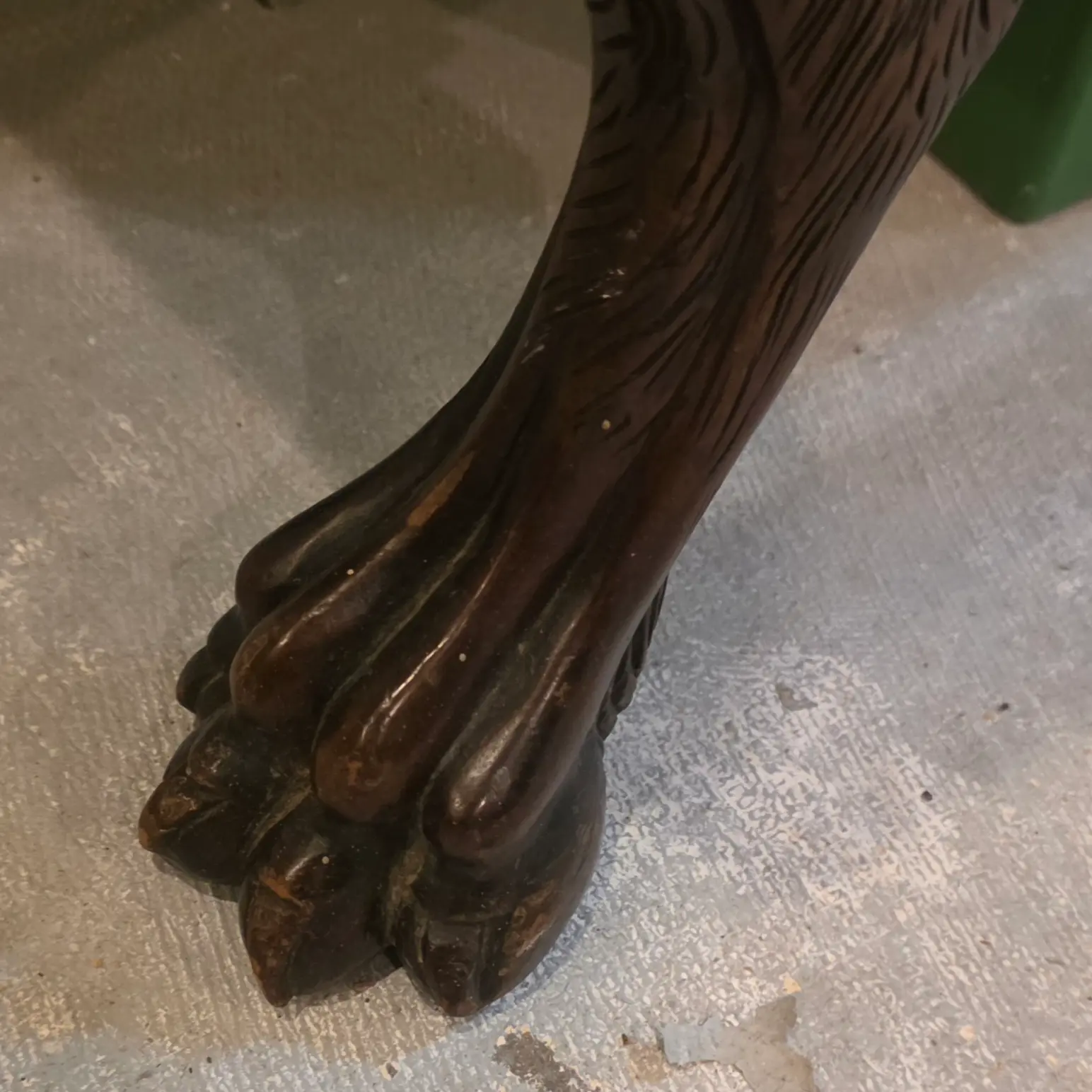 Carved apron and scrolling cabriole legs that terminate in claw-and-ball feet