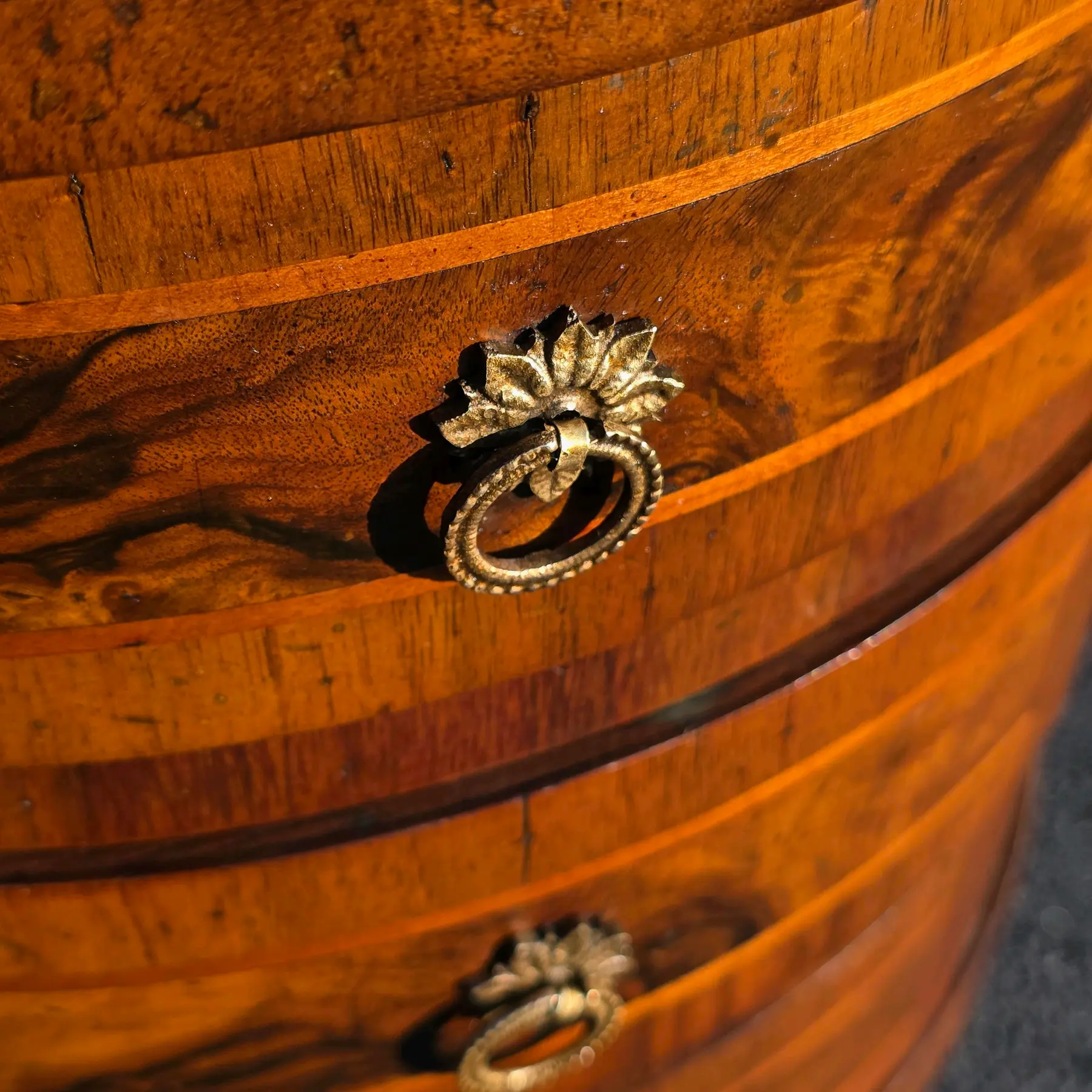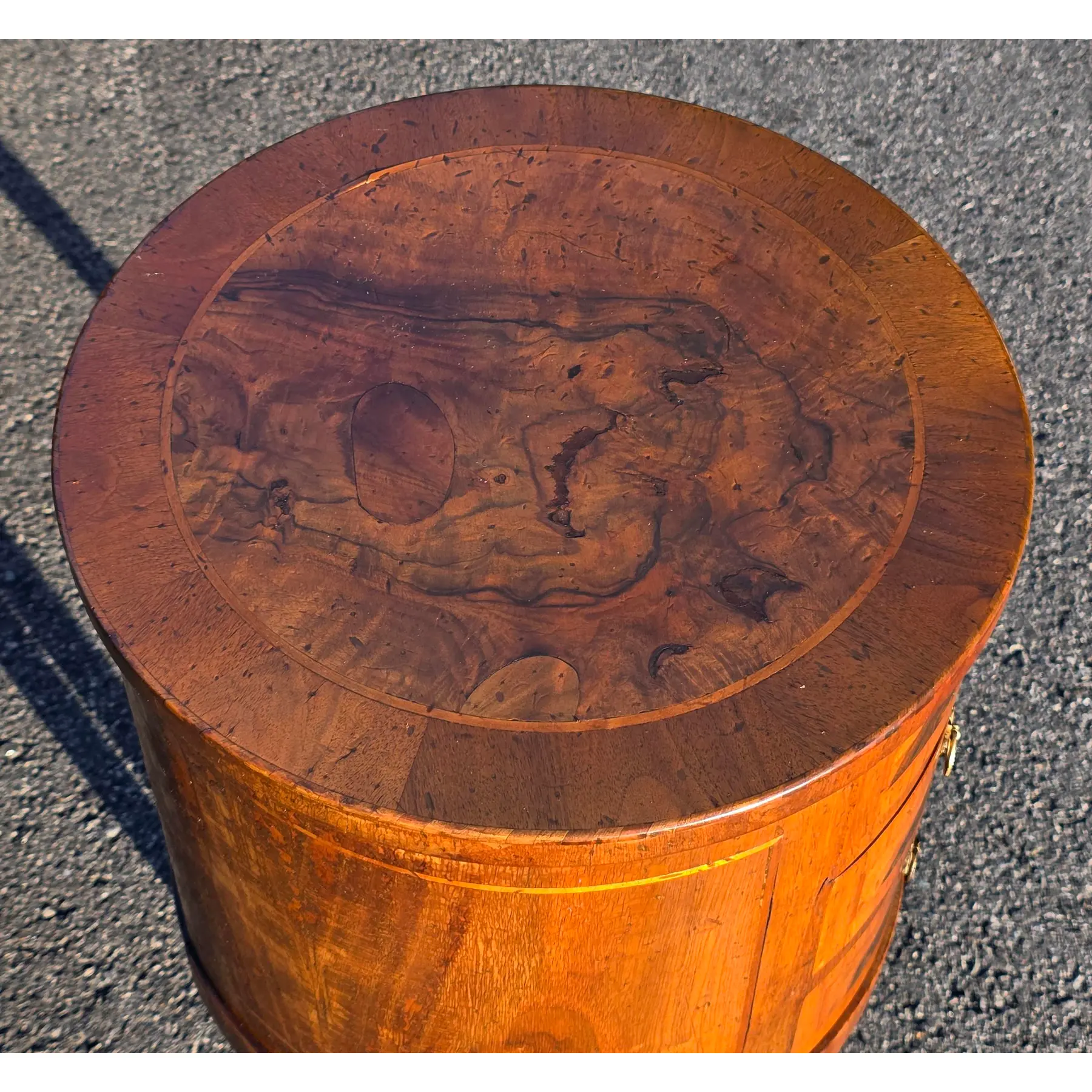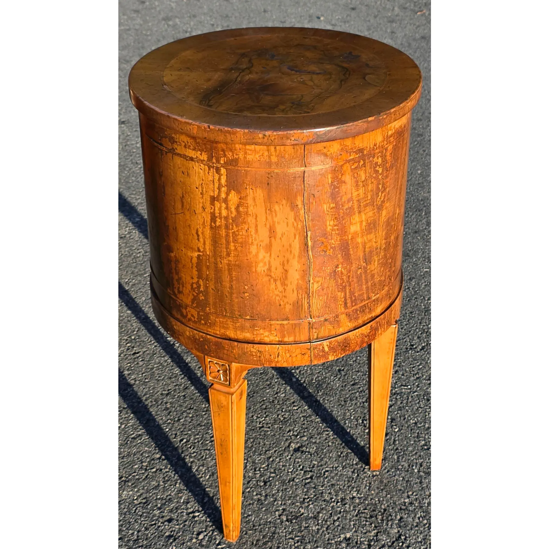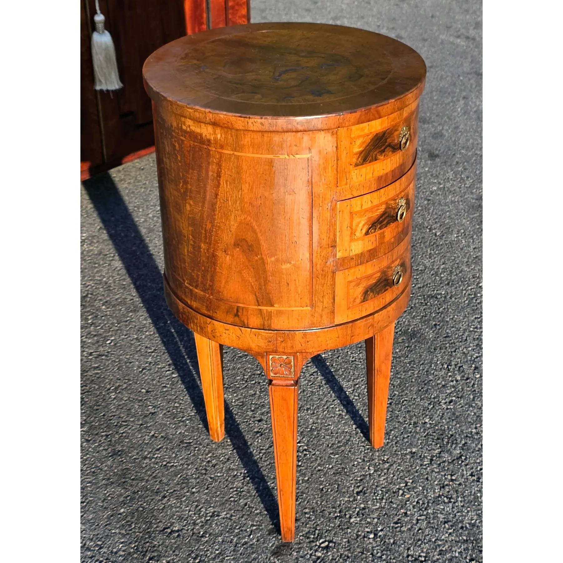 Late 19th Century Italian Louis XVI Style Round Walnut W/Inlay 3-Drawer Side Table
