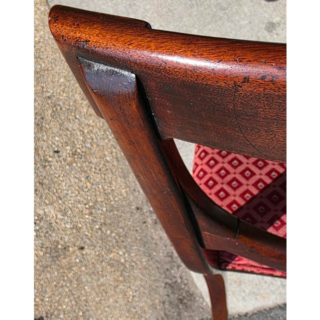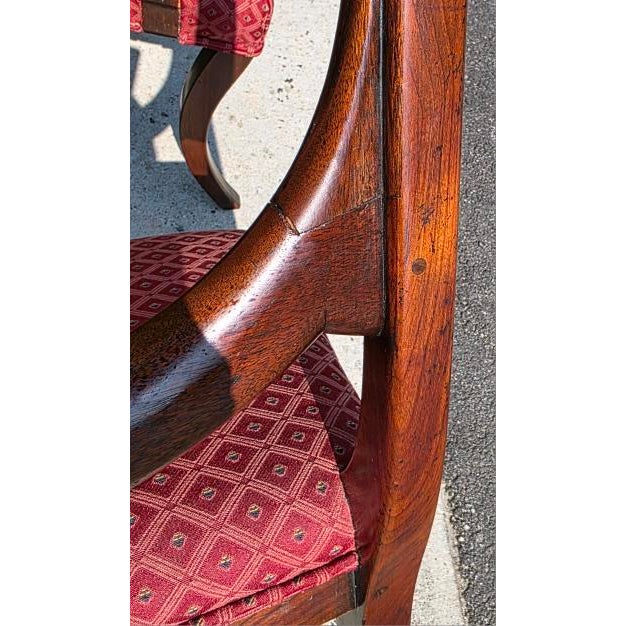 Rich mahogany frames with slightly flared sabre legs
