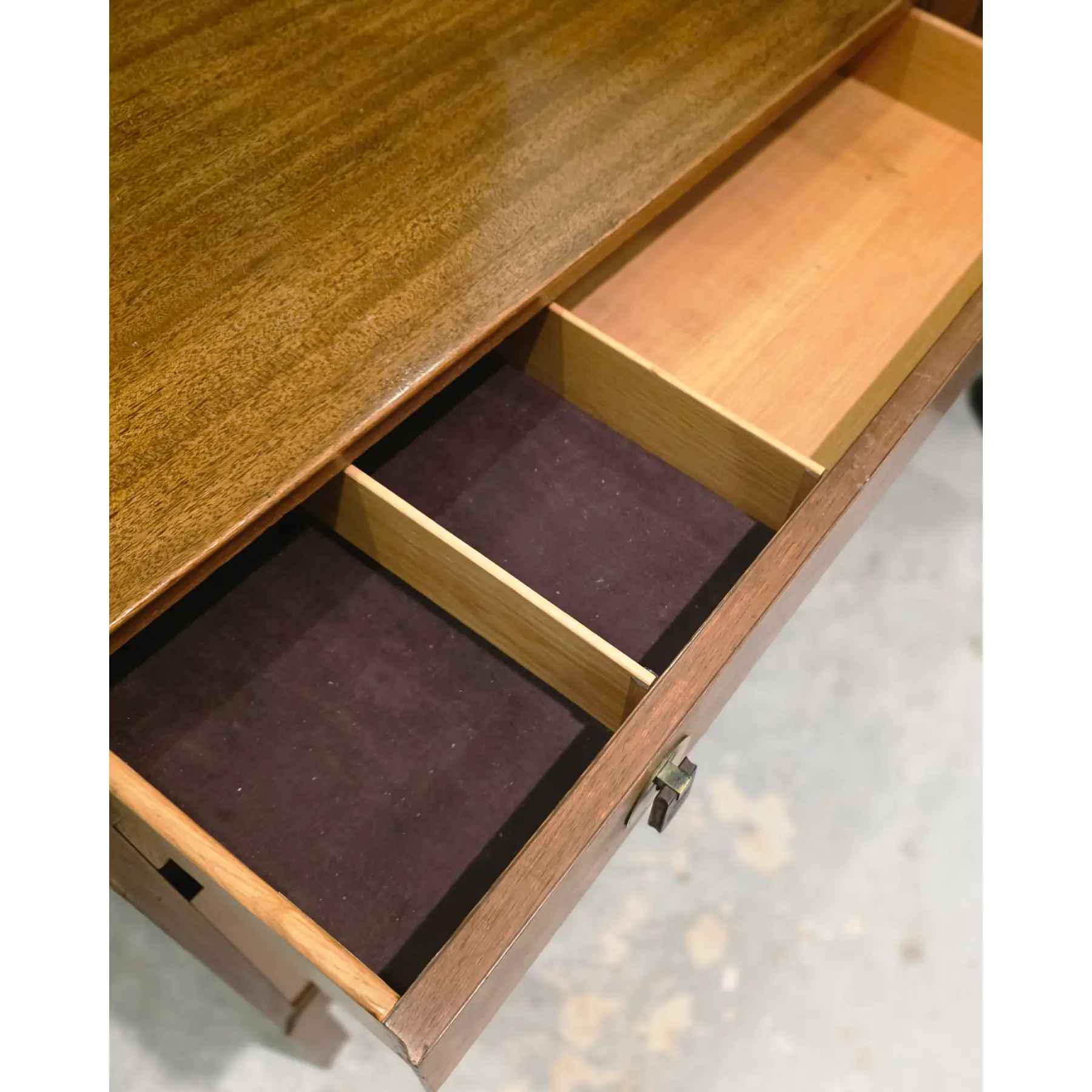 Drawers are well-crafted with lined fitted wooden compartments