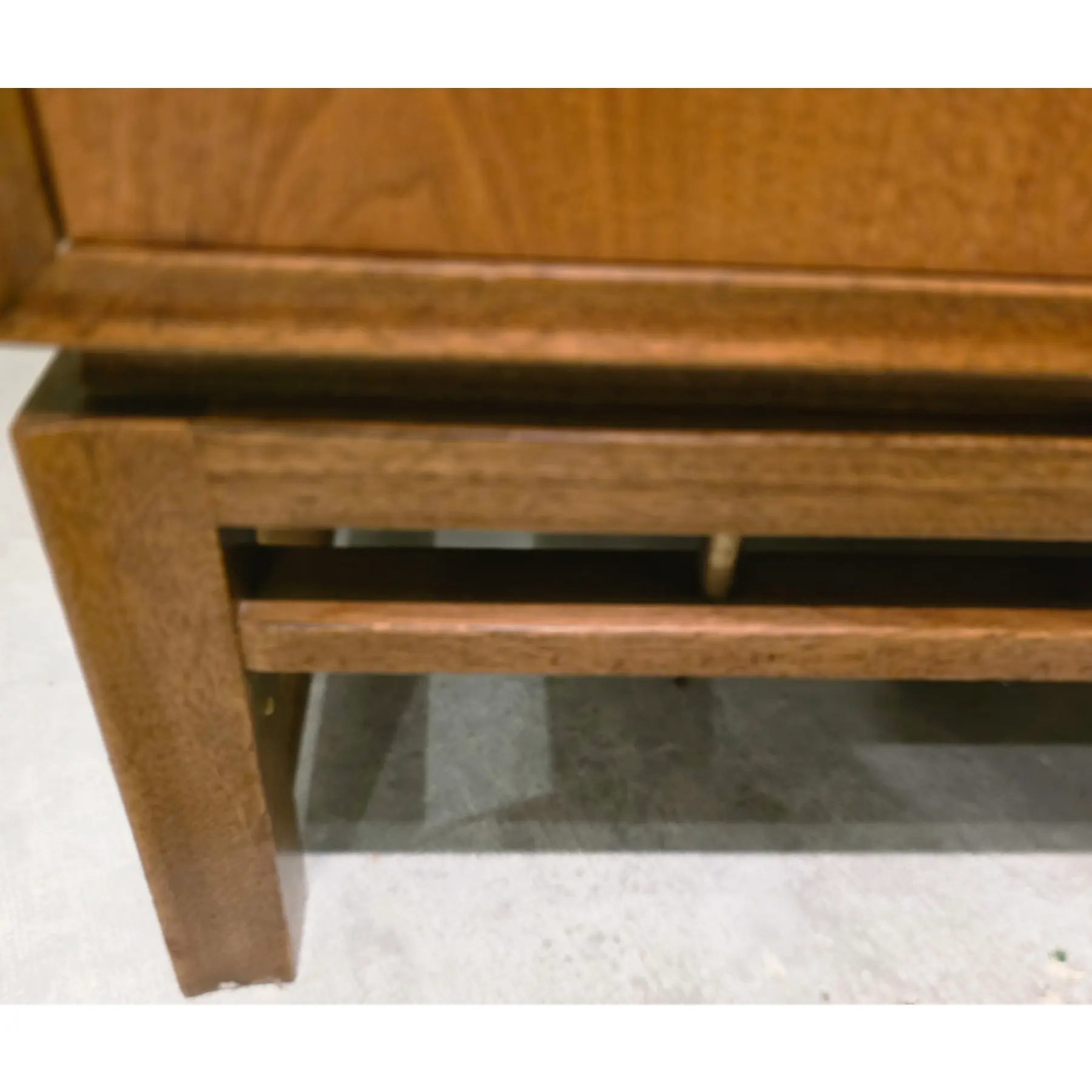 Cabinet base has squared legs and horizontal stretchers that elevate the case above the floor