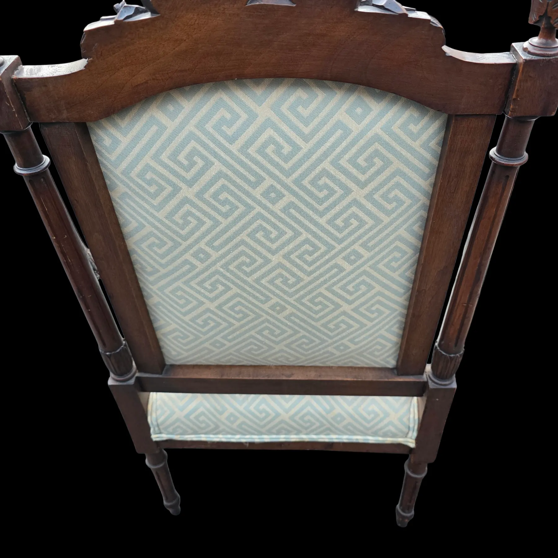 Pale Blue fabric upholstery with repeating Greek key pattern