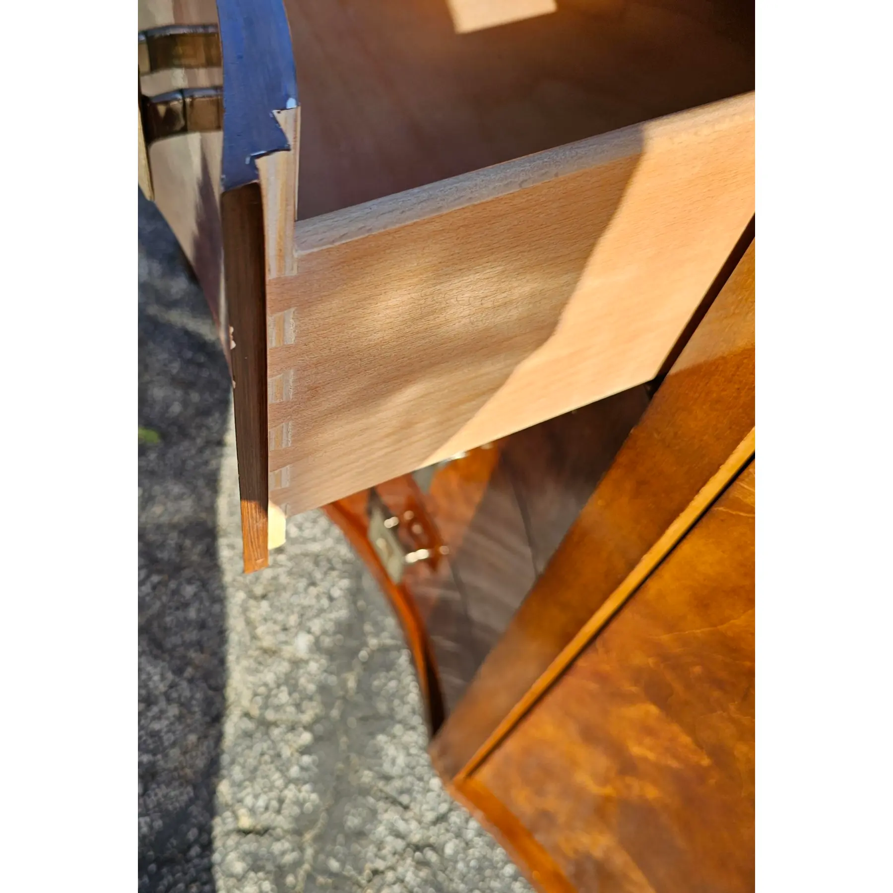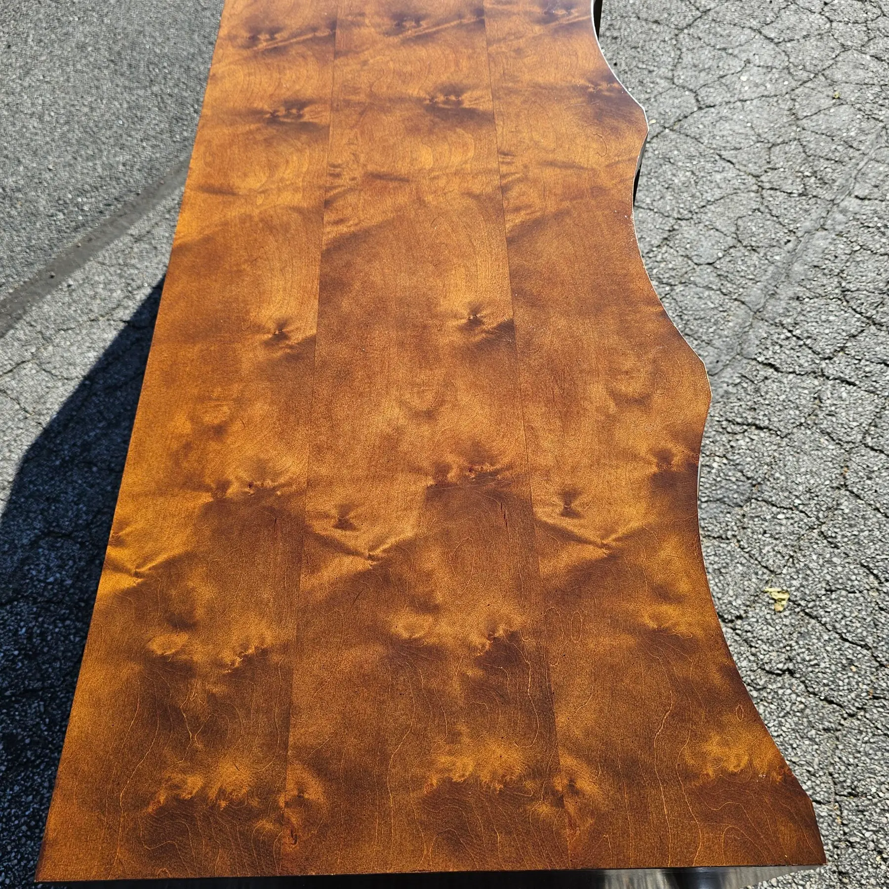 Solid wood construction with richly figured burl wood veneers and hand-polished finishes