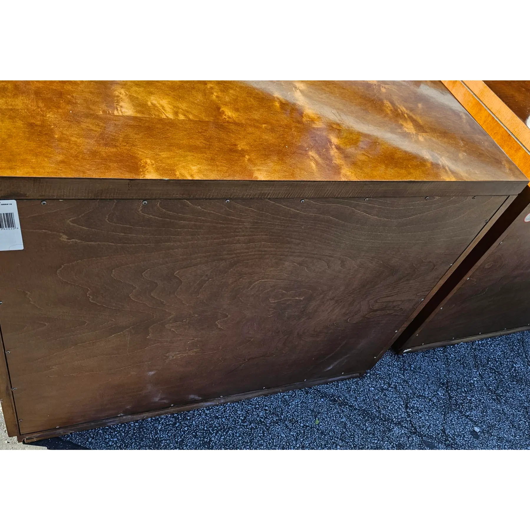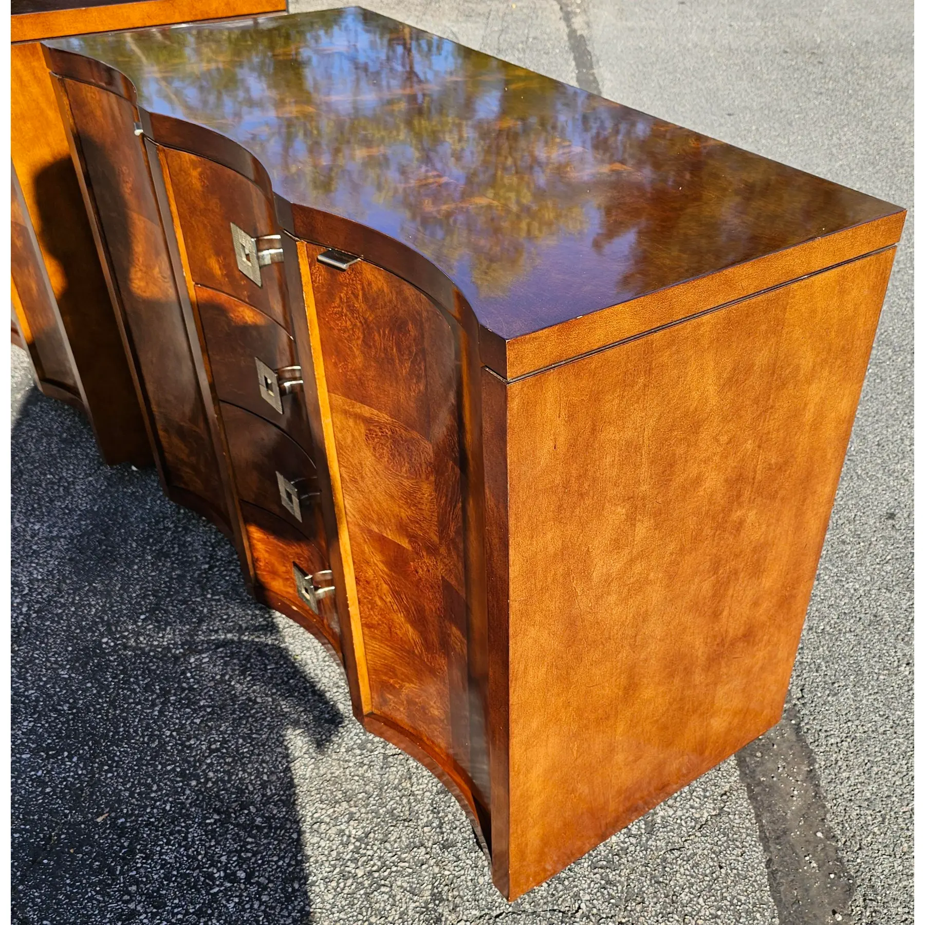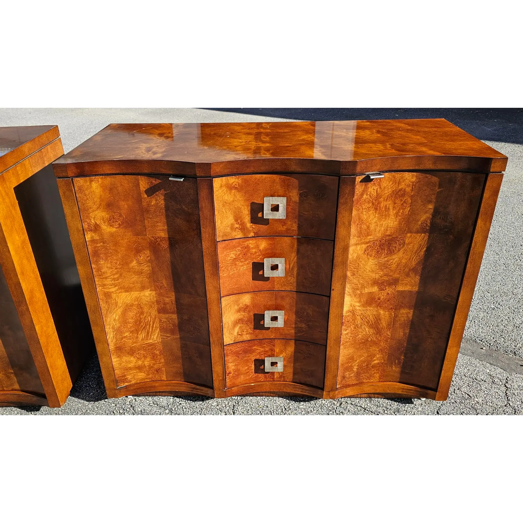 This Pair of Vintage Century Furniture Omini Burl Wood Sideboard Cabinets is tailored for a high-end buyer who has an eye for architectural elegance in furnishings and appreciates vintage pieces that are sophisticated.