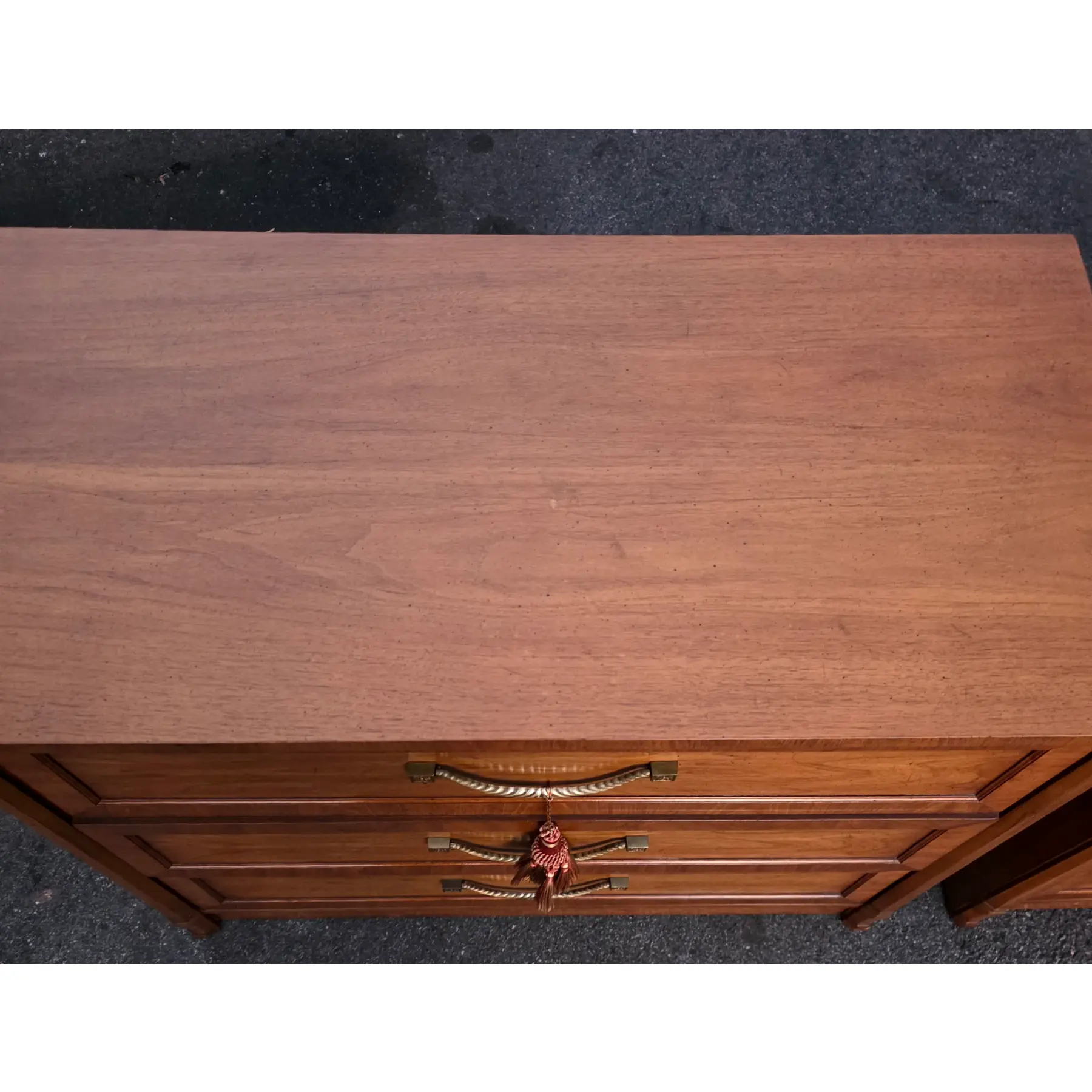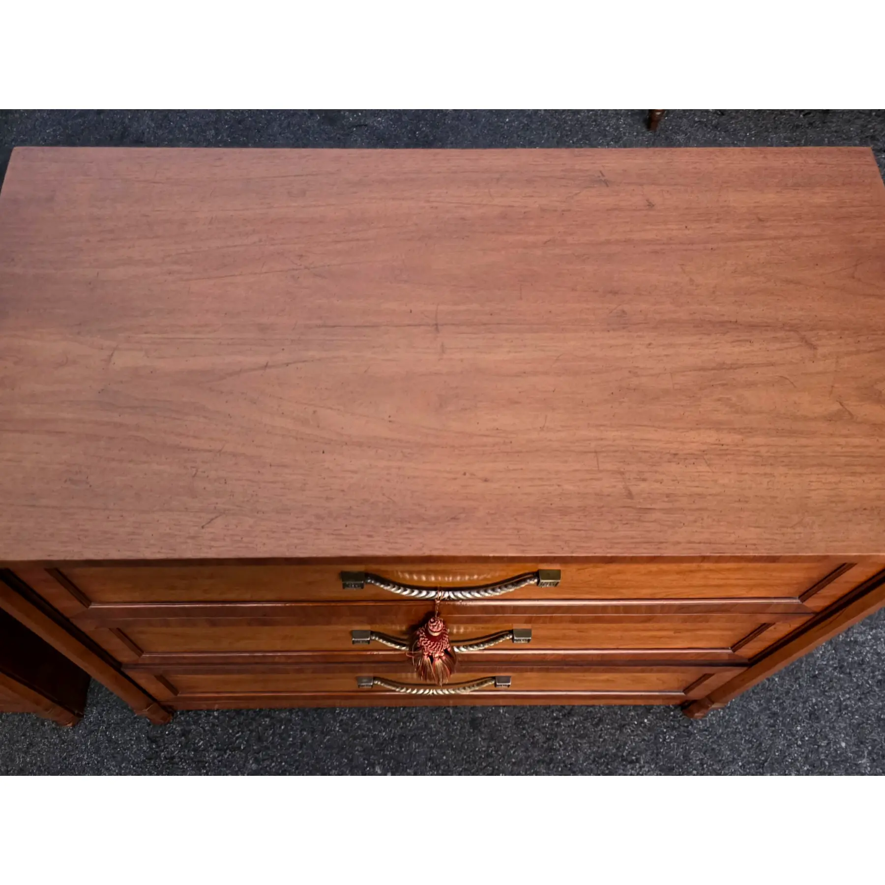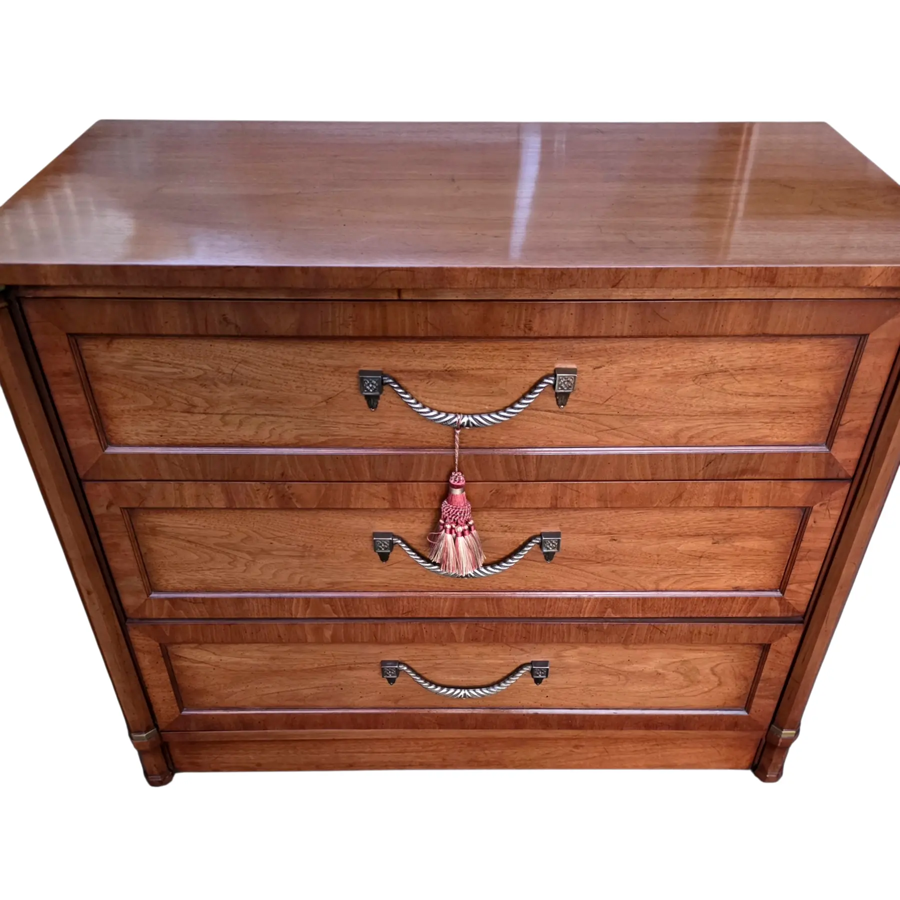 Brass drawer pulls with decorative tassel accents