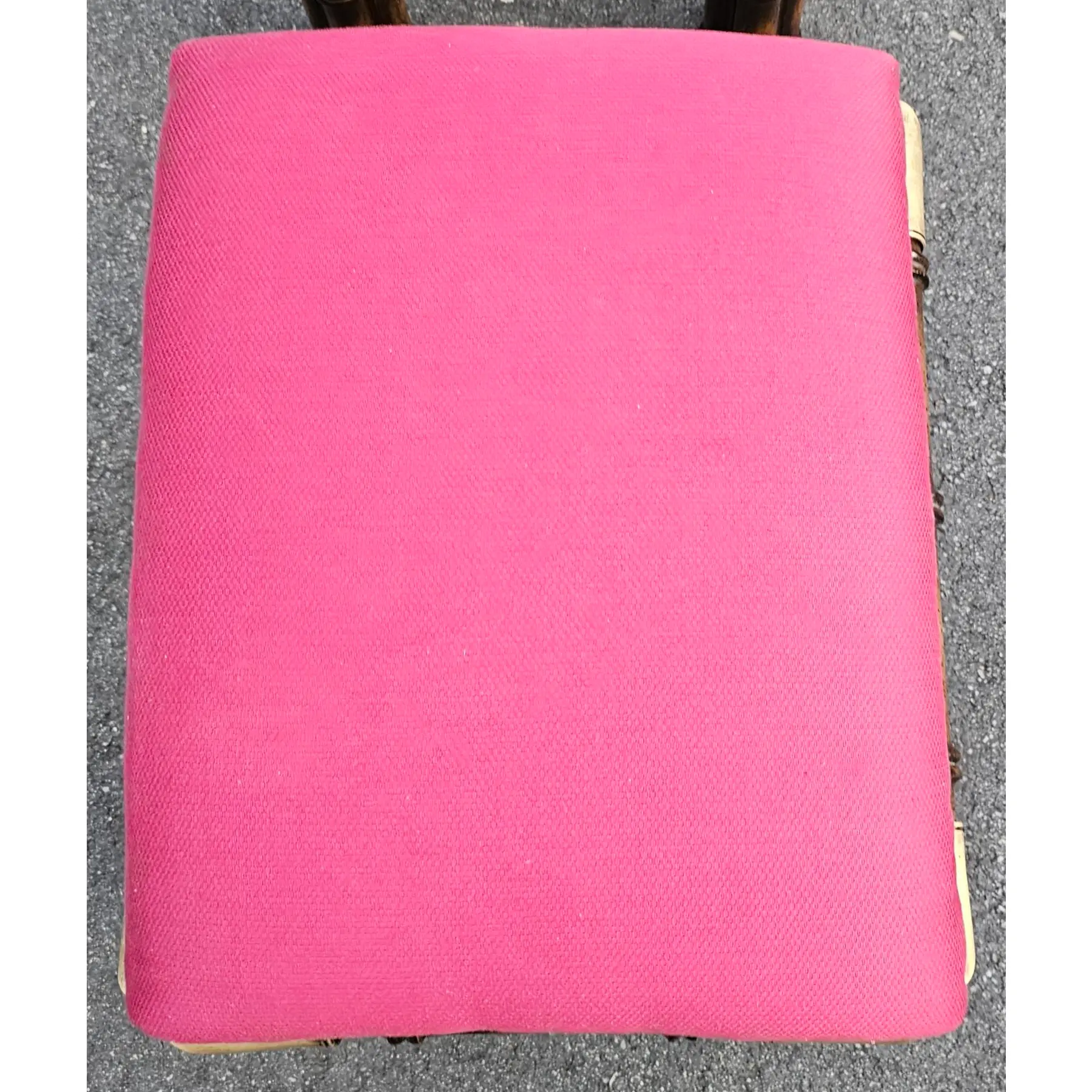 Upholstered in vivid fuchsia-pink tightly tailored and lightly textured fabric
