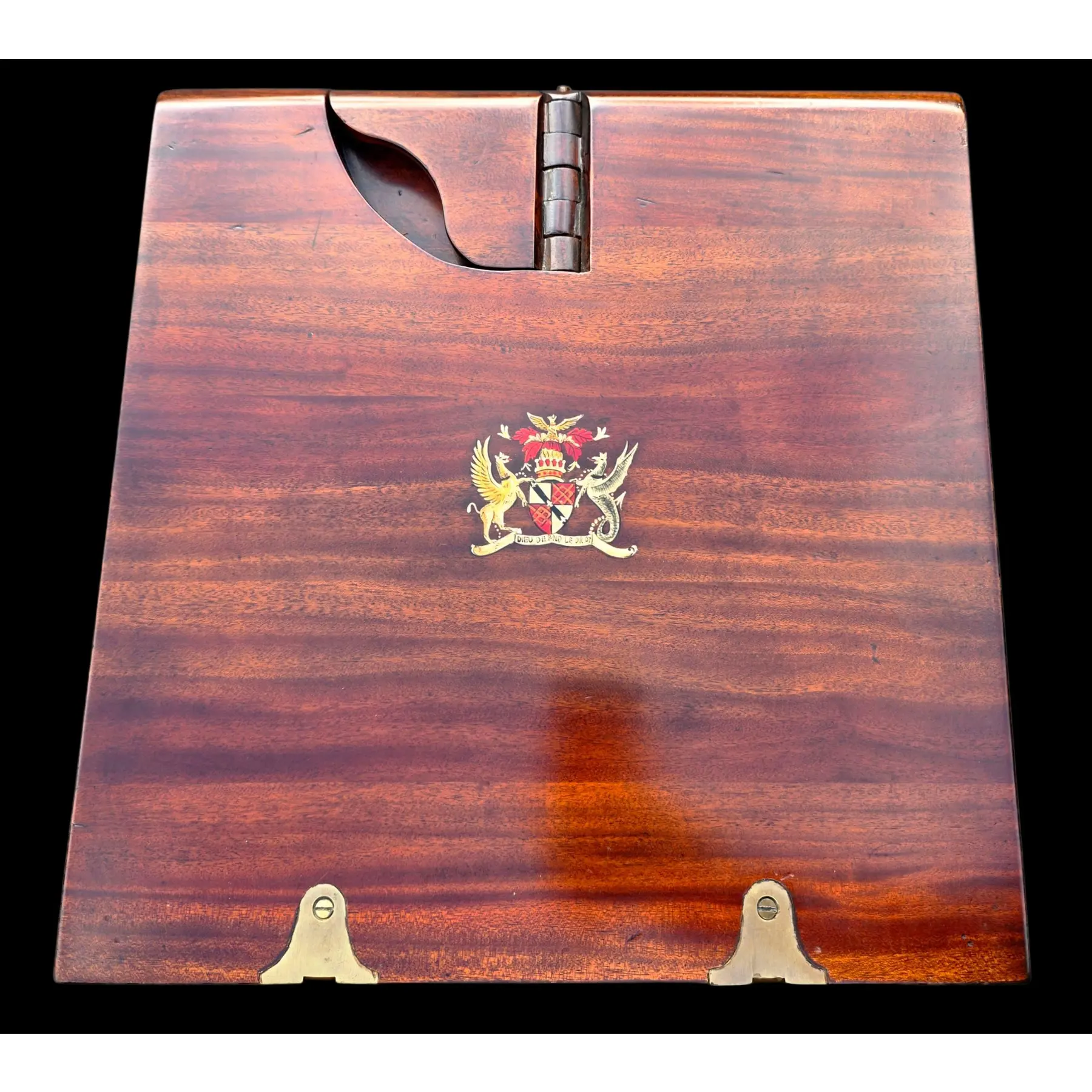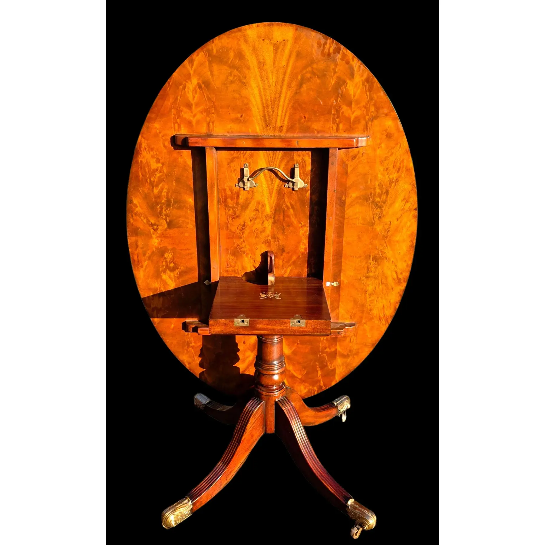 Table’s underside displays Althorp Collection’s crest and brass locking mechanism