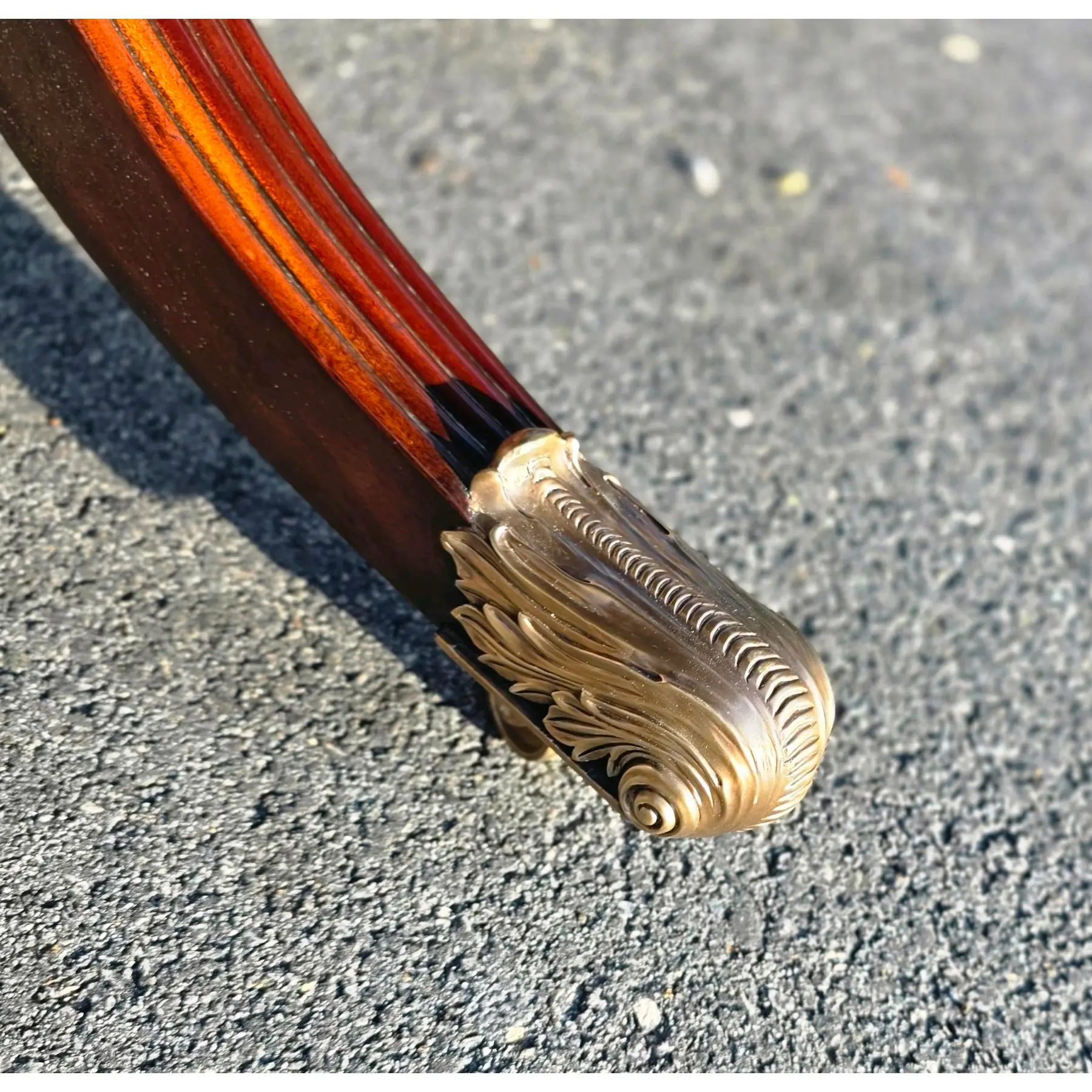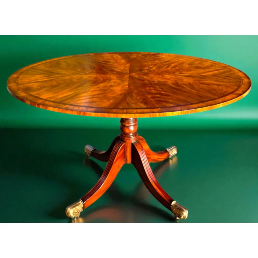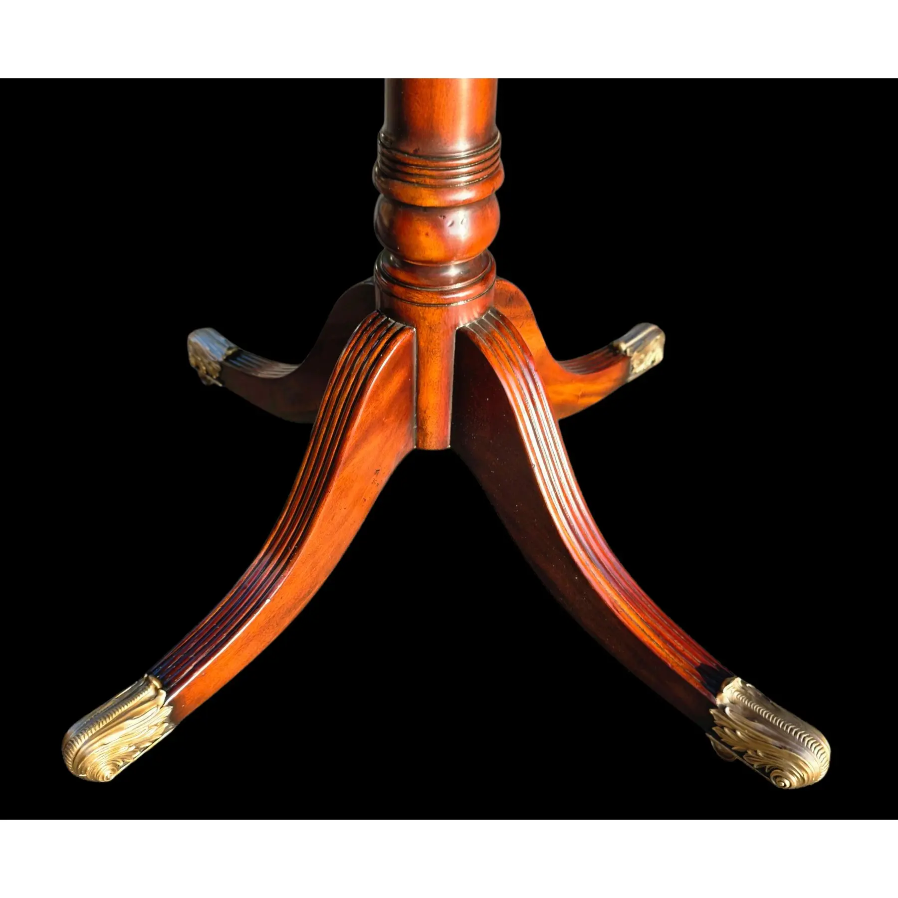 Pedestal Base with brass accents – four splayed reeded legs that terminate in cast brass paw feet with toole filiate motifs