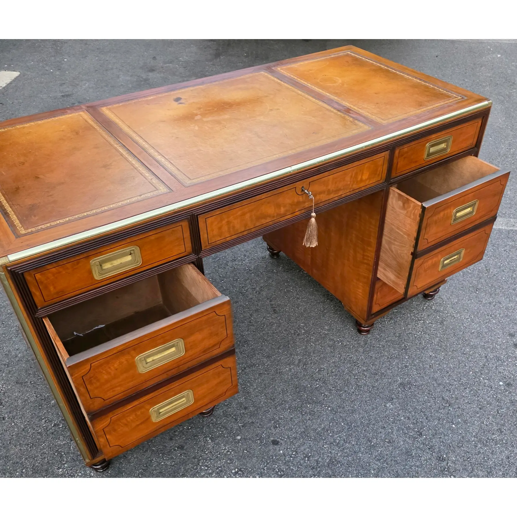 Vintage Baker Furniture Collector’s Edition Campaign Style Leather Top Desk