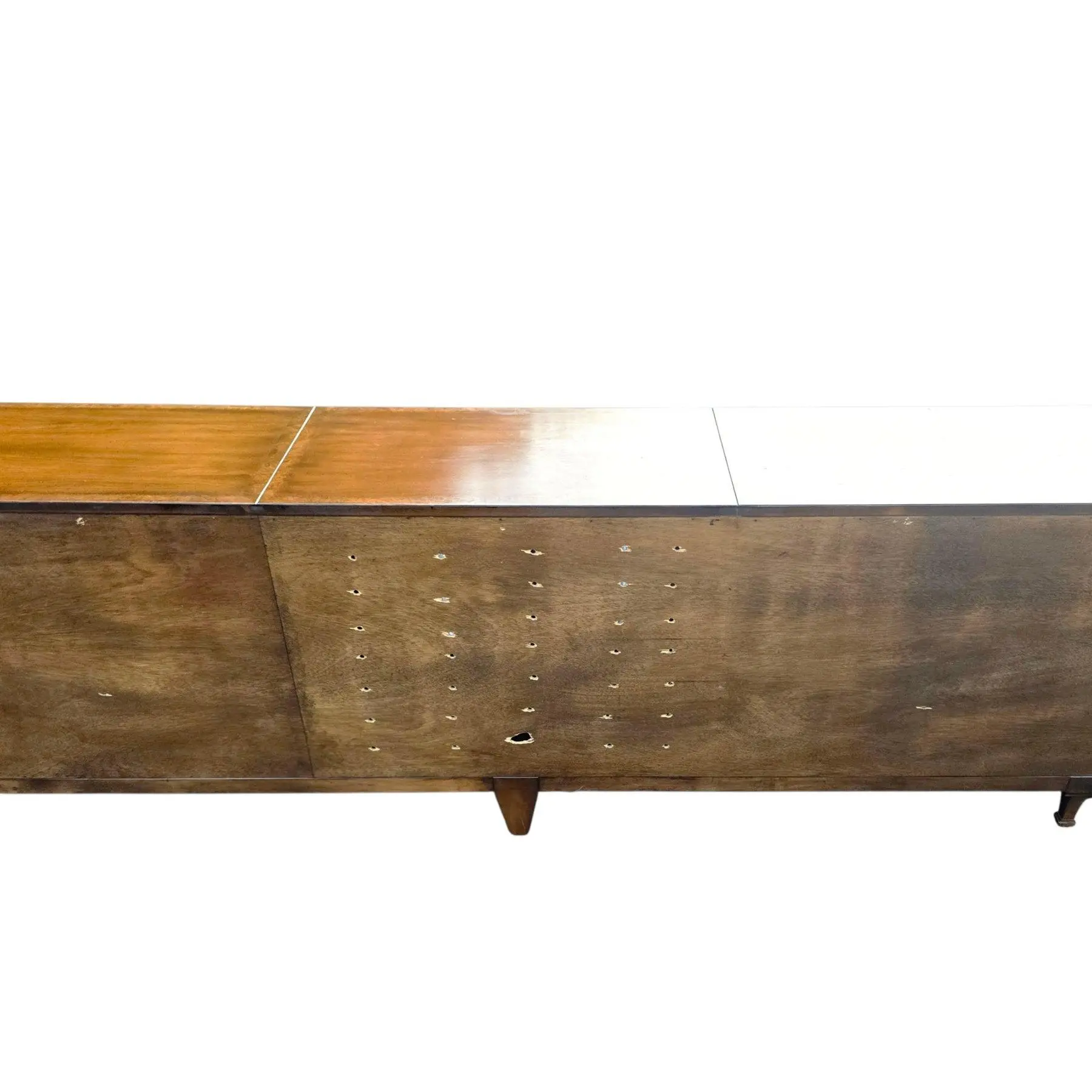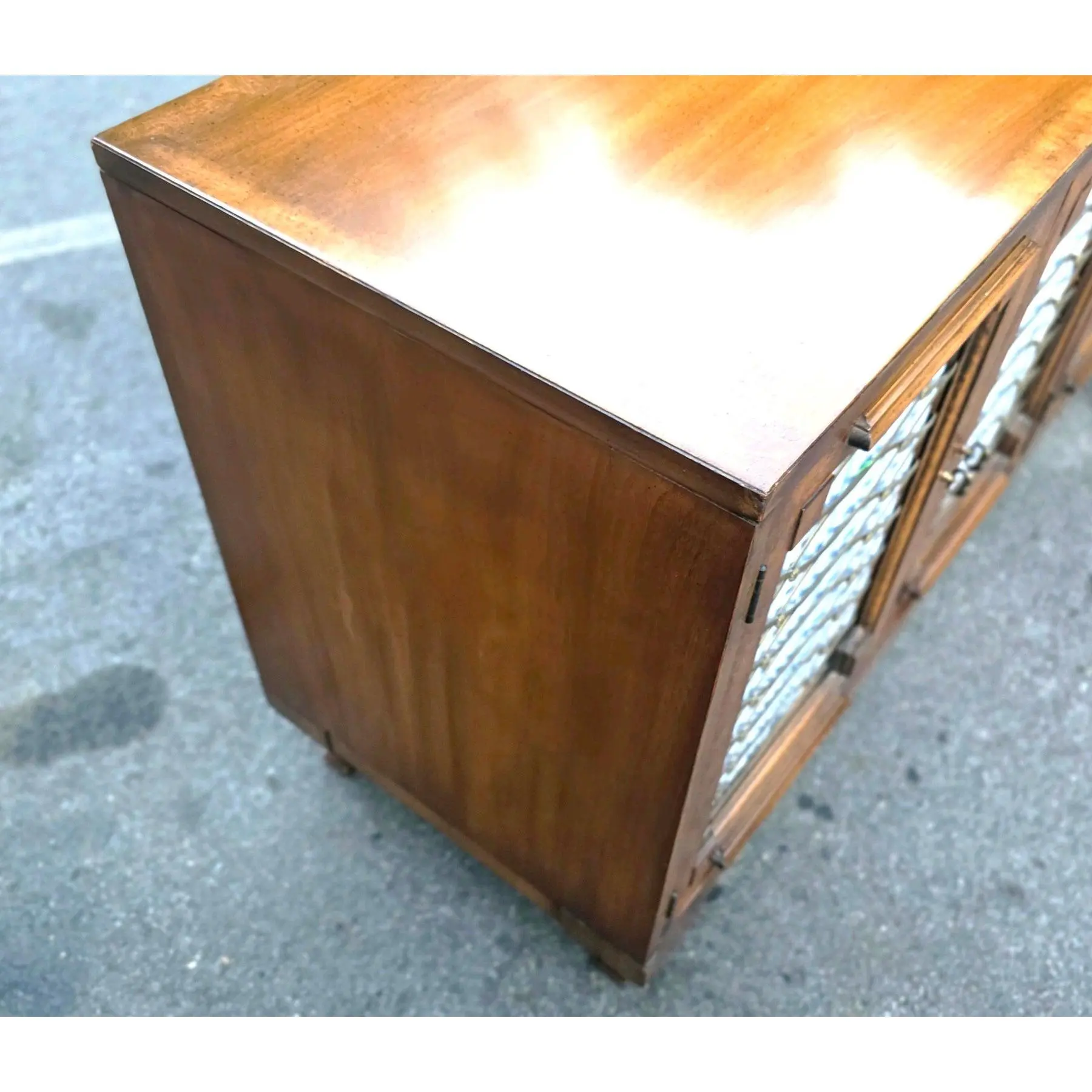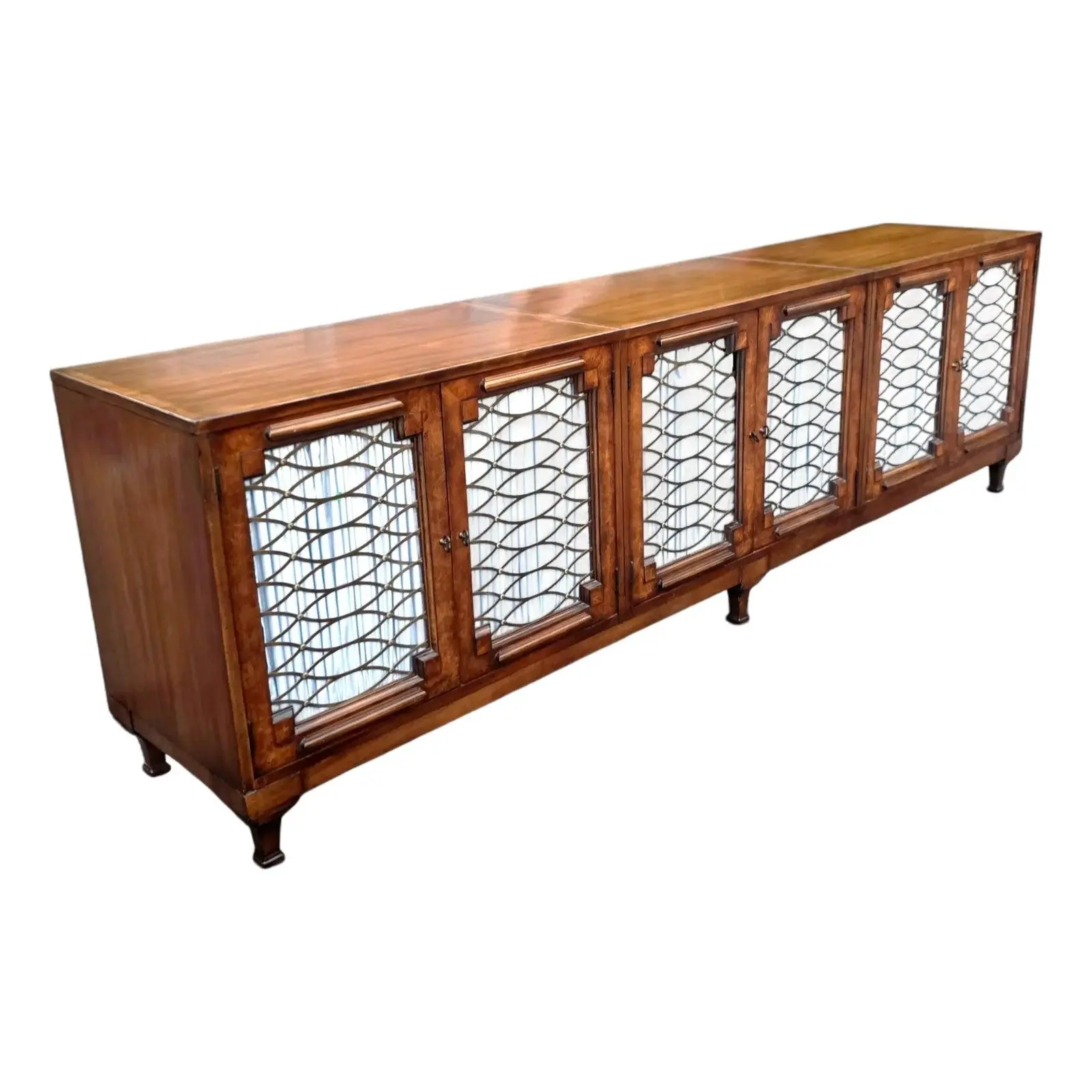 This Vintage French Empire-Style Cherry Credenza with Six Lattice Doors is gorgeous, featuring beautifully detailed lattice-front grilles that help make it an amazing focal point of virtually any well-curated interior or design style.