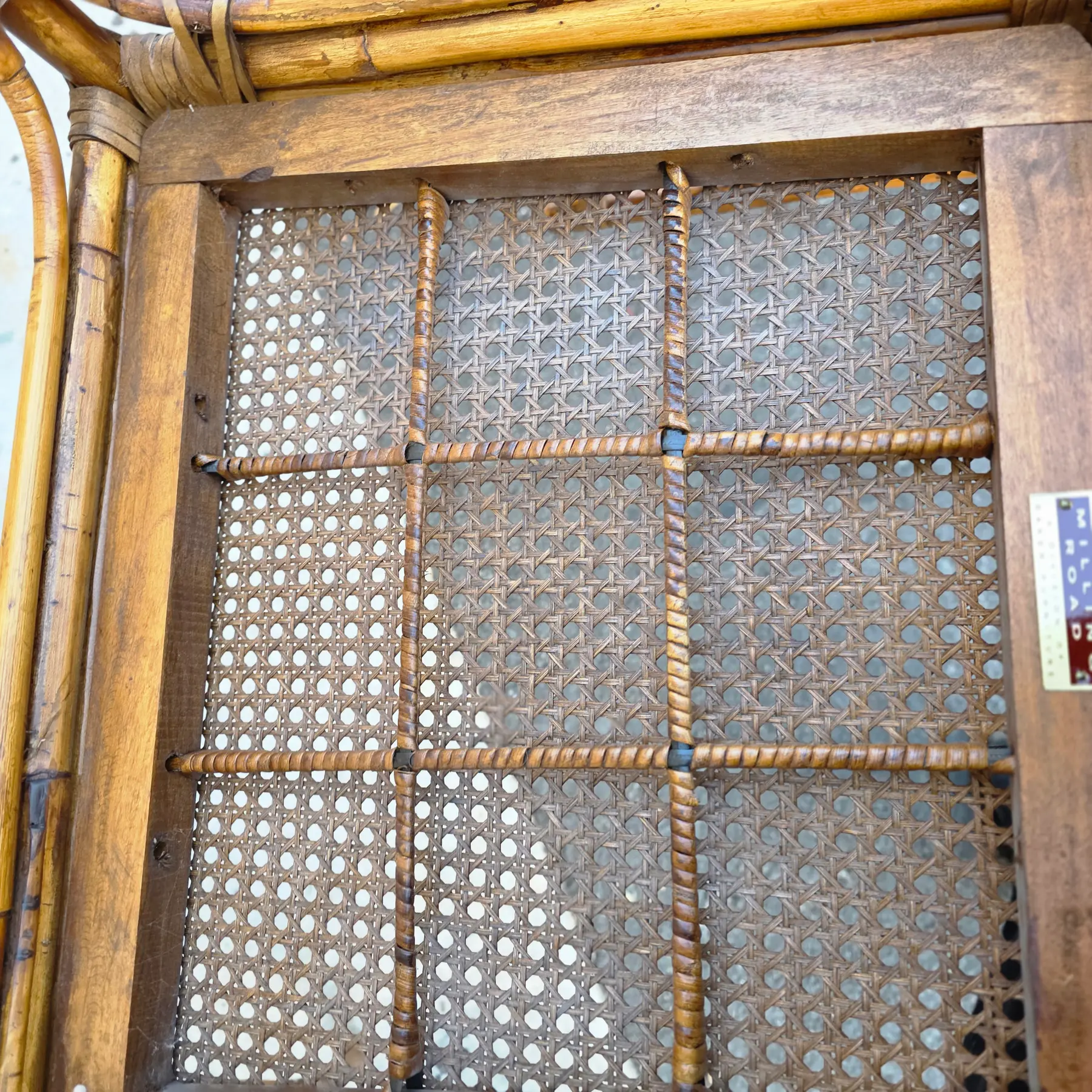 Cane-bottom seats within bamboo frames with traditional open-weave pattern