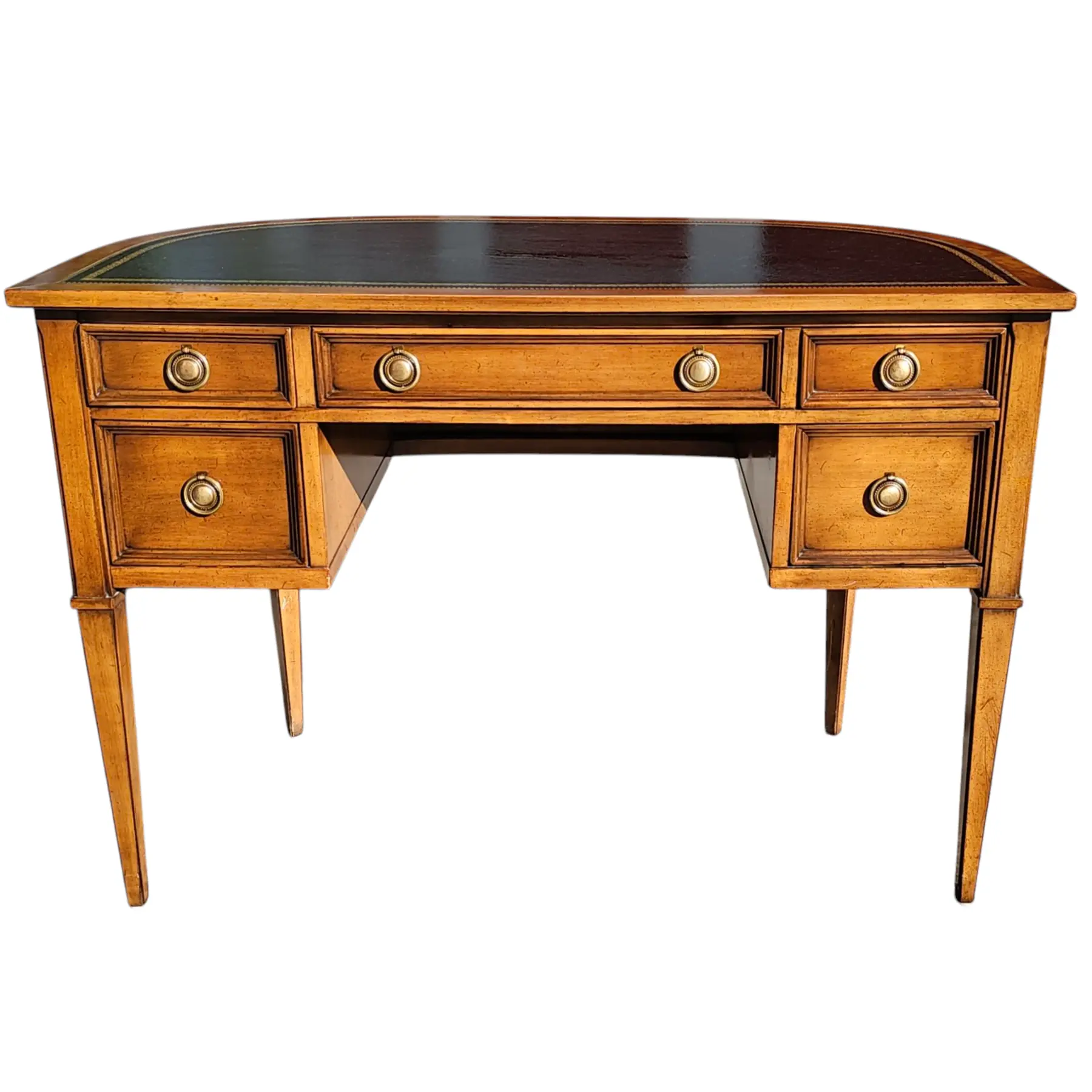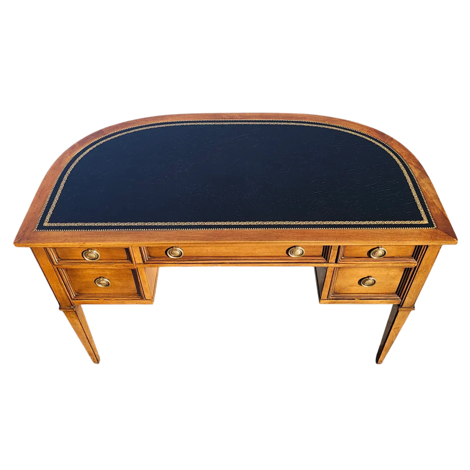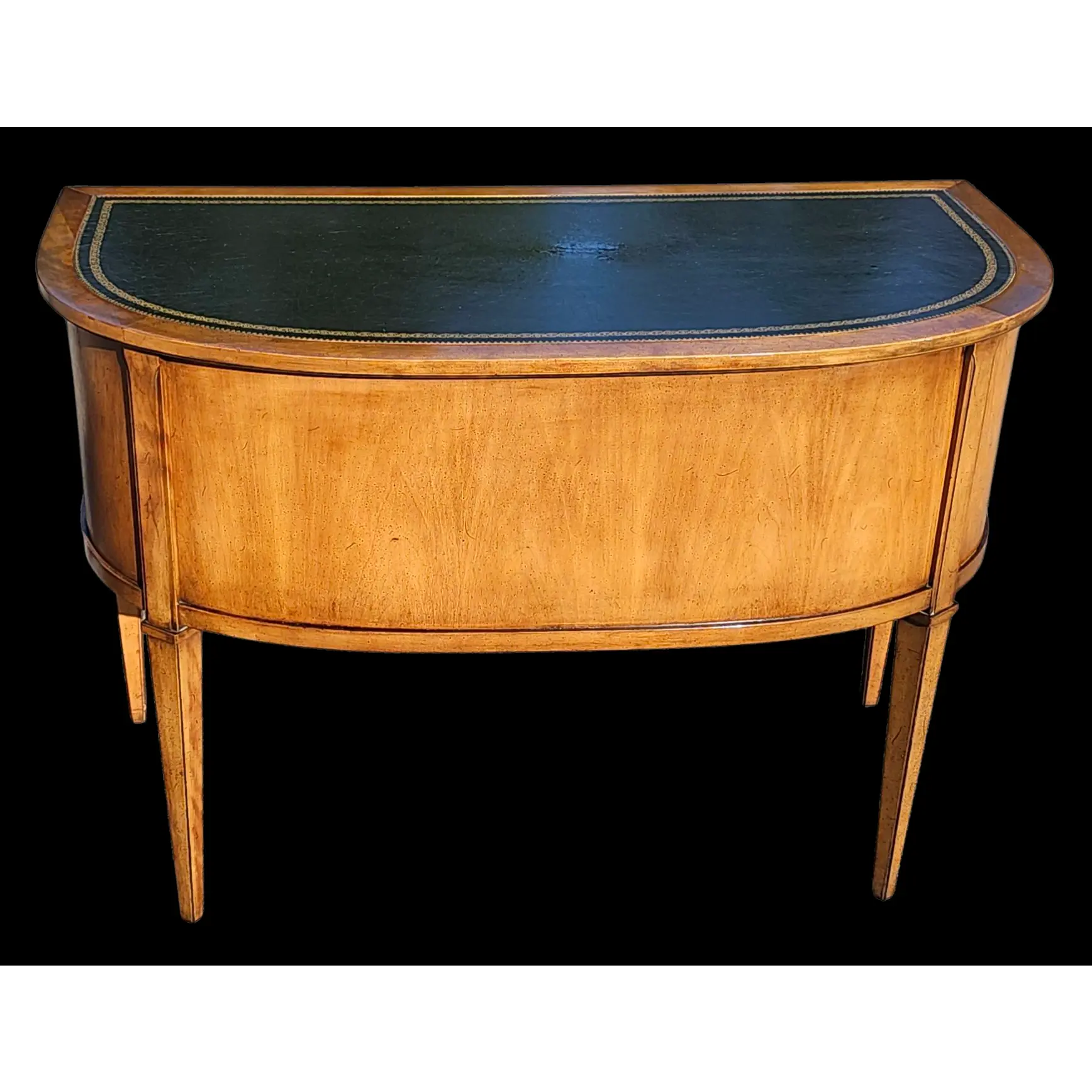 This Vintage Sligh Furniture Leather Top Neoclassical Demilune Ladies Writing Desk showcases original quality and refined furniture style.